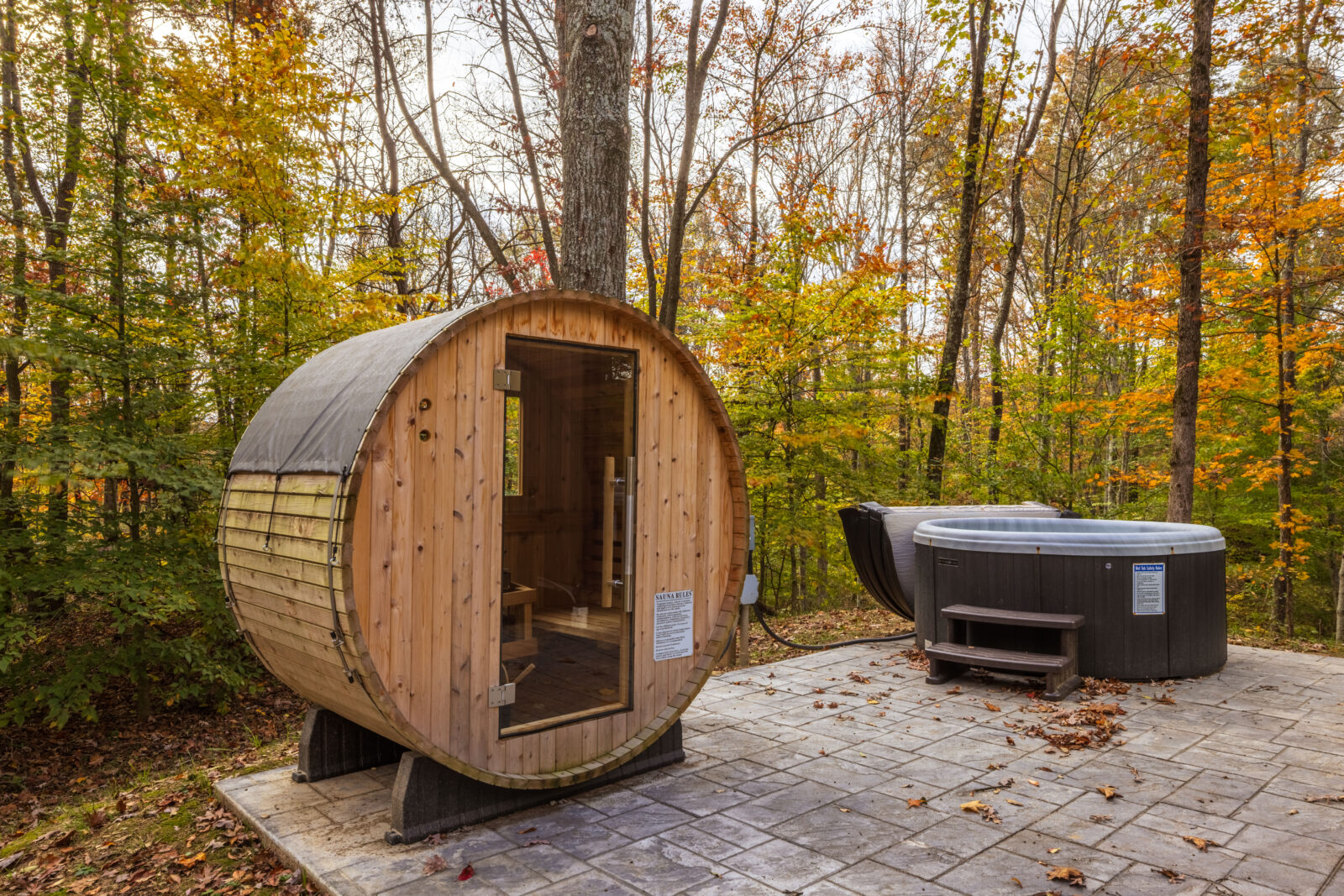COMFORT: Flora is tucked within the trees of Hocking Hills and seamlessly blends the indoors with the outdoors, which can be enjoyed from the comfort of your bed. Sleeping two guests, the mirror cabin has luxurious interior finishes with the intention of rest, relaxation, and reconnection. Relax in your private hot tub and sauna and see the surrounding flora and fauna magnified by your dwelling. Gather around the fire pit and take in the changing seasons, which are abundant in Hocking Hills.